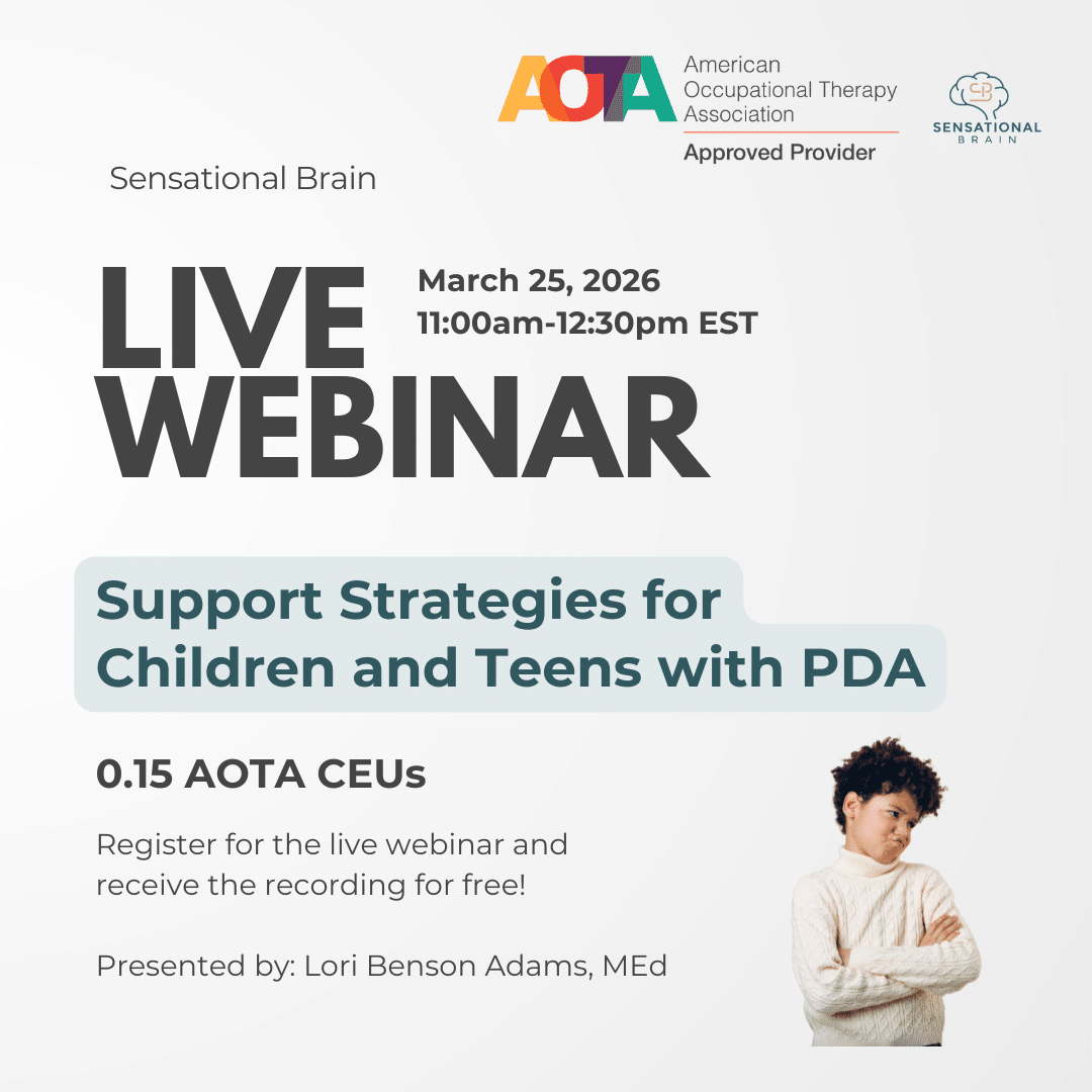 Sensational Brain LLC is an AOTA Approved Provider of professional development (#8215). PD activity approval ID# 00000. This distance learning, interactive activity is offered at 0.15 CEUs, Introductory level, OT Delivery Service, Foundational Knowledge. The assignment of AOTA CEUs does not imply endorsement of specific course content, products, or clinical procedures by AOTA or indicate AOTA approval of a certification or other professional recognition.