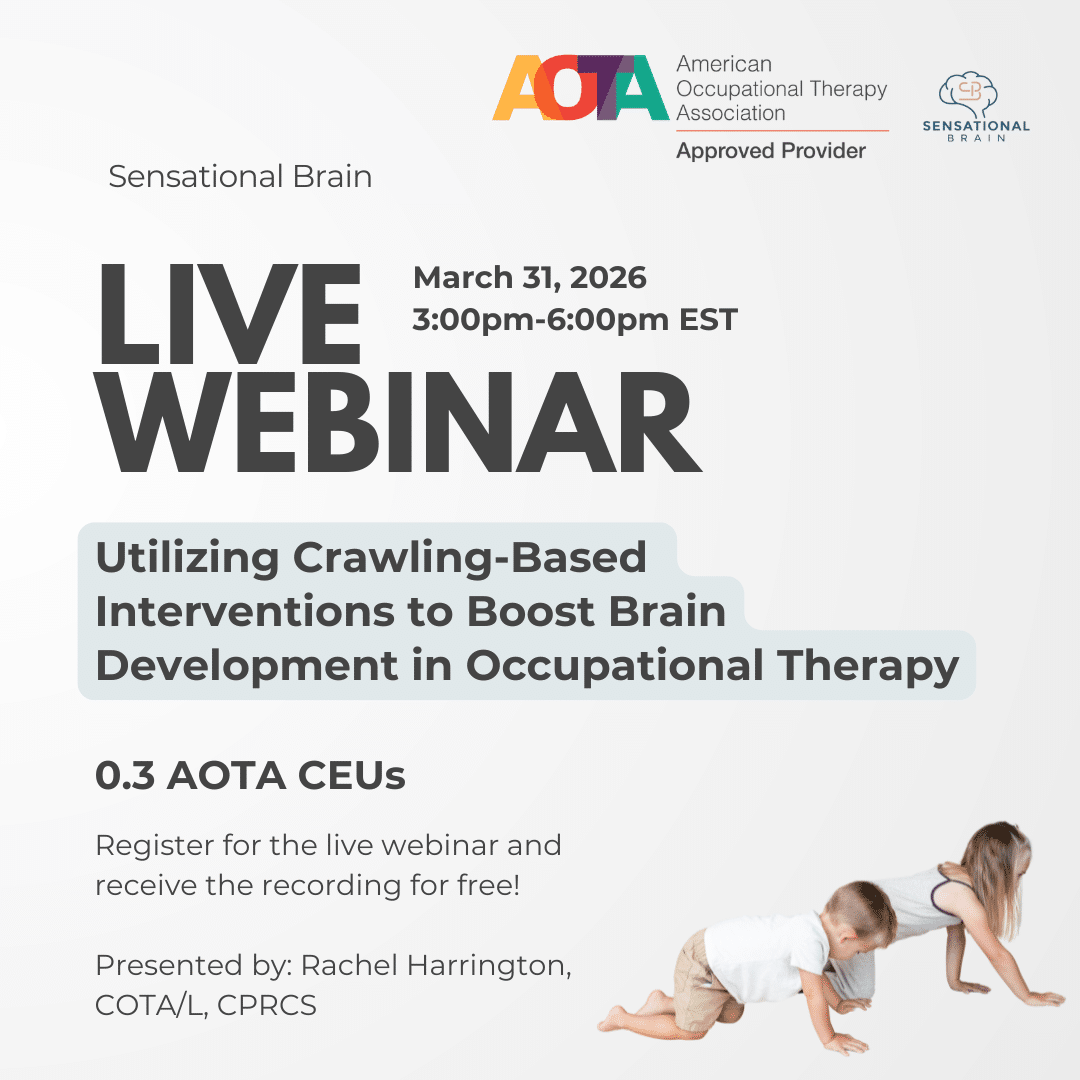 This 3-hour engaging, practical course provides occupational therapists an opportunity to explore the power of crawling-based interventions based on the Crawling for Brain Development curriculum. As a fundamental developmental milestone, crawling is crucial in promoting sensory processing, motor coordination, and cognitive skills across the lifespan. Participants learn the neurological and physiological benefits of crawling and how to integrate crawling-based strategies into therapy sessions to support children with developmental delays, sensory challenges, and retained primitive reflexes. Through evidence-based techniques, video demonstrations, and hands-on activities, attendees receive actionable tools to improve overall brain function, enhance sensory-motor pathways, and facilitate more effective therapeutic outcomes. Participants leave with a roadmap to implement the program in school and/or community settings. Join us to unlock the potential of crawling as a dynamic therapeutic tool and empower the children you work with to thrive in their developmental journey!